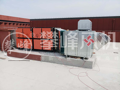 PVC手套在高溫生產烘制過程中,有10-15%的混合料溶劑揮發形成烘烤煙氣〔由降粘劑,DOP、TXIB、DOA、環氧大豆油、鈣鋅穩(安)定劑組成〕,這些煙氣彌漫在車間內部會嚴重影響生產環境的清潔,直接排放到外界空氣中也會造成原材料浪費。
